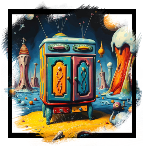 Brabbel-Incubator „die Nachwuchskiste“. S46rz sind non-binäre Wesen und vermehren sich mit Bluetooth-ähnlicher Telepathie. Klappt meist im Zustand höchster Erregung beim Tentakel Karaoke. Die Incubator brütet die Glibbereier aus, der BABEPOO betreut bis zum lauffähigen Alter von 3-4 Quantenz.